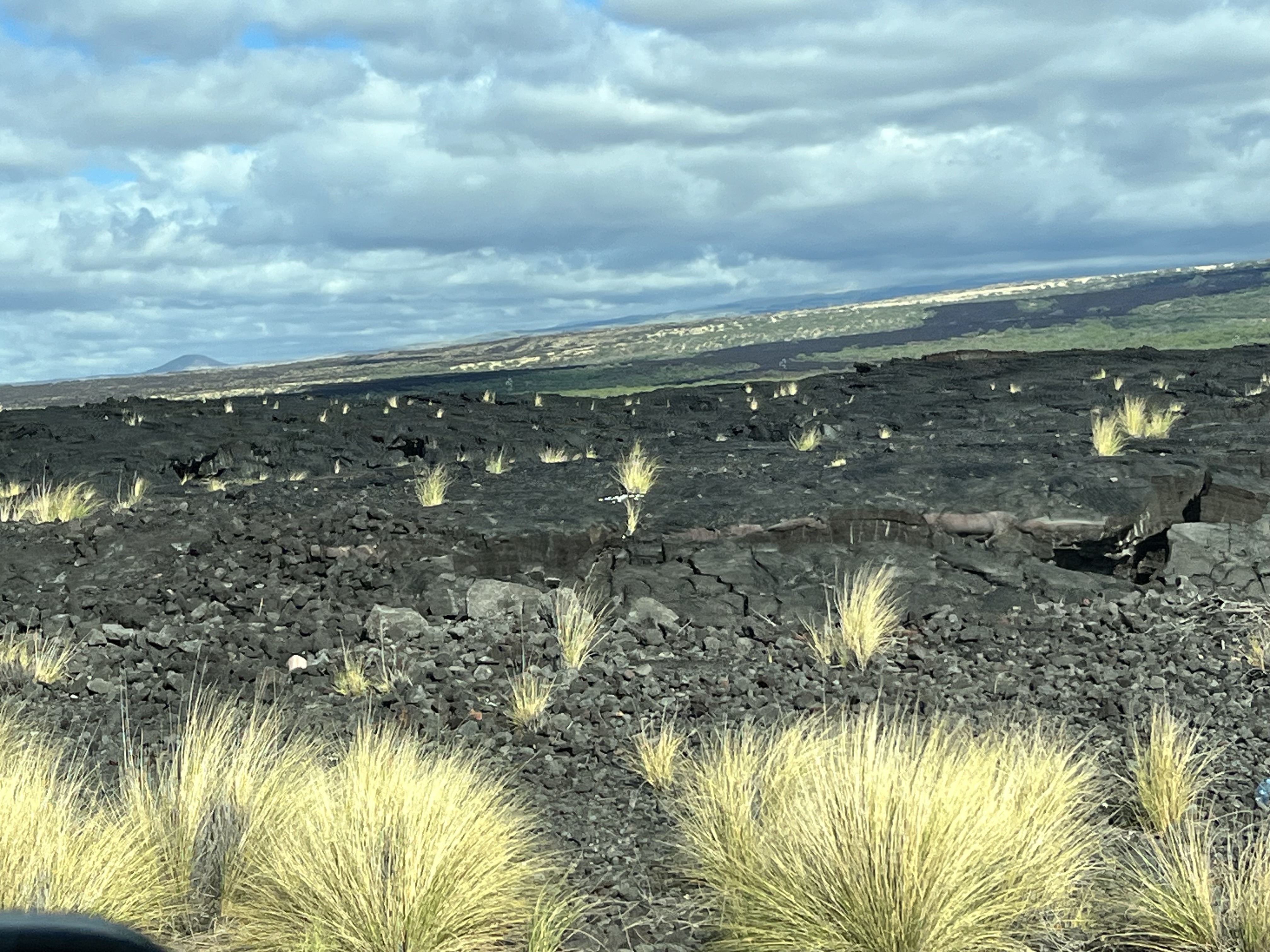 The drive back up the mountain shows the flows in another light. We are all getting zoned into lava. It is a spectacle like nothing else, a fascinating design up on mountainsides complete with occasional striking islands of miraculously spared mature forest, called kipukas by the Hawaiians, says B